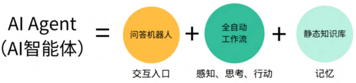 言归正传,AI 智能体,即人工智能体(Artificial Intelligence Agnet),是具有自主性、学习能力和推理能力的计算机程序,是一种能够通过感知环境信息、进行决策和执行动作的智能实体。可以依靠 AI 赋予的能力完成特定任务,并在此过程中不断对自我进行完善和改进。具备通过独立思考、调用工具去逐步完成给定目标的能力。